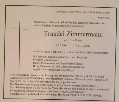 Erinnerung an unsere jahrelange Schatzmeisterin